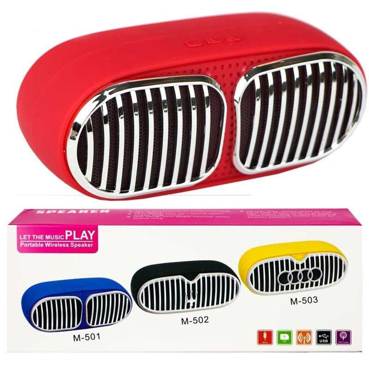 نوع اتصال: بیسیم و باسیم اقلام همراه: کابل میکرو USB حداکثر برد بلندگو: 10 متر منبع انرژی: باتری درگاههای ارتباطی: USB اسپیکر M501 نسبت به ابعاد کوچک آن از کیفیت بسیار خوبی برخوردار بودهو همچنین دارای رادیو میباشد.جنس بدنه این محصول از پلاستیک +ABS بوده این اسپیکر در مجموع توانی معادل 4وات دارد در پشت این محصول بلوتوث ، رم میکرو SD ، فلش USB قرار گرفته بر بالای اسپیکر سه کلید فیزیکی قرار گرفته است که از طریق آن می توانید تغییرات ولوم ، موسیقی و مدیریت پخش را بر عهده بگیرید.
