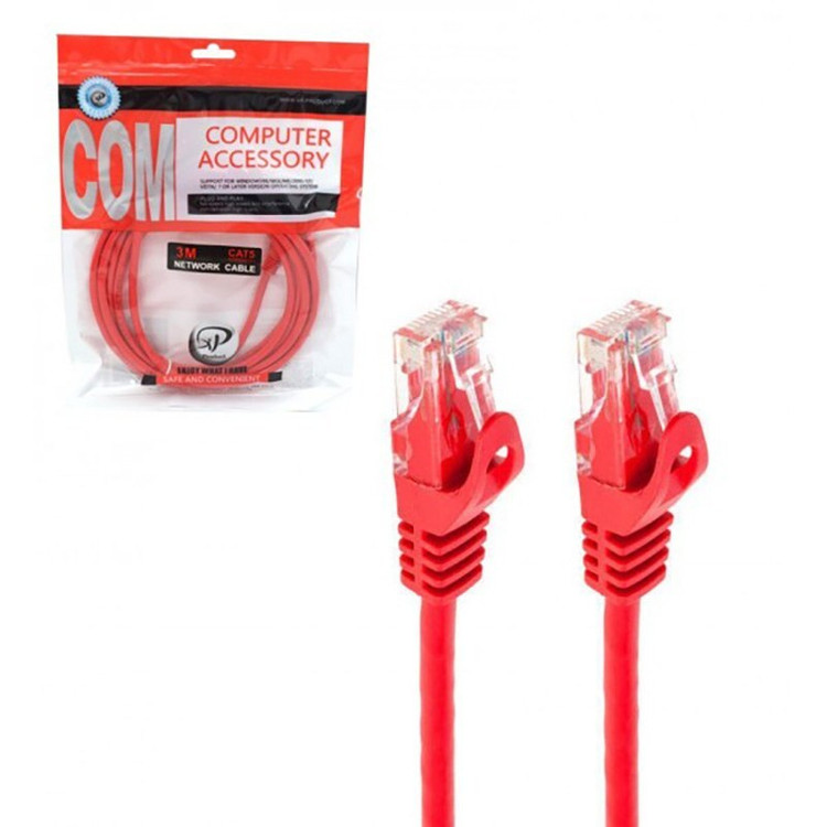 کابل شبکه XP پچ کرد 3 متری Cat5 کابل شبکه Cat5 برند ایکس پی (XP) از چهار زوج سیم مسی تولید می شود و طول آن 3 متر می باشد. این سیم ها از طریق سوکت شبکه (RJ-45) به انواع دستگاه ها متصل می شوند. پهنای باند فرکانسی این نوع کابل به (100) مگاهرتز می رسد و سقف سرعتی بین 10 تا 100 مگابیت برثانیه دارد. این کابل را می توان برای ATM ها، شبکه اترنت (1000Base-T)، (100Base-T) و (10Base-T) به کار گرفت. کابل های کت 5 از نوع مفتولی یا رشته ای هستند که در این میان مدل های مفتولی از استحکام بالایی برخوردارند و جهت انتقال داده در مسافت های طولانی به کار گرفته می شوند.