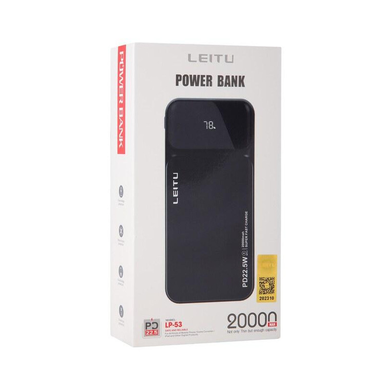 پاوربانک لیتو مدل LP-53 ظرفیت 20000 میلیآمپرساعت، پاوربانکی است که میتوانید بهراحتی و سهولت از آن استفادههای مفیدی داشته باشید. این پاوربانک محصولی از برند لیتو با امکانات فراوان در یک ابعاد مطلوب و مناسب طراحی شده است. طراحی ظاهری این پاوربانک بسیار جذاب و ماهرانه است. این مدل با ظرفیت اسمی 20000 میلیآمپرساعت تولید شده که پاسخگوی نیاز شما در سفر و مواقعی که به پریز برق دسترسی ندارید، است. شرکت لیتو این محصول را با 2 خروجی مختلف جهت شارژ کردن در اختیار شما قرار میدهد که این موضوع نشانگر کارایی بالای این محصول است. یک خروجی پورت USB است و یک خروجی دیگر به صورت پورت تایپ سی قابل استفاده است( توجه داشته باشید این پورت هم به عنوان پورت خروجی و هم به عنوان پورت ورودی قابل استفاده است). ضمن اینکه پورت میکرو به عنوان ورودی برروی این دستگاه تعبیه شده است. شدت جریان درگاههای خروجی و ورودی این دستگاه تا 3 آمپر است. و توان خروجی این پاوربانک 22.5 وات میباشد. پشتیبانی از تکنولوژی USB Power Delivery پاوربانک LP-53، دستگاههای شما را بهتر از هر زمان دیگری شارژ میکند. این پاوربانک از طیف وسیعی از این تکنولوژیها پشتیبانی میکند.