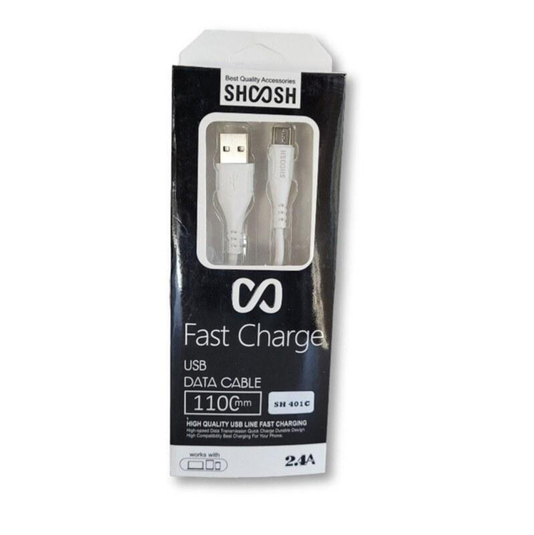 کابل شارژر Type-C فست شوش مدل SH401C مناسب برای شارژ انواع گوشی با پورت تایپ سی فست شارژ دارد توان خروجی 2.4 آ مپر گارانتی 12 ماهه شوش طول 110 سانتی متر رنگ سفید