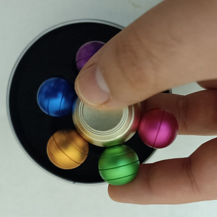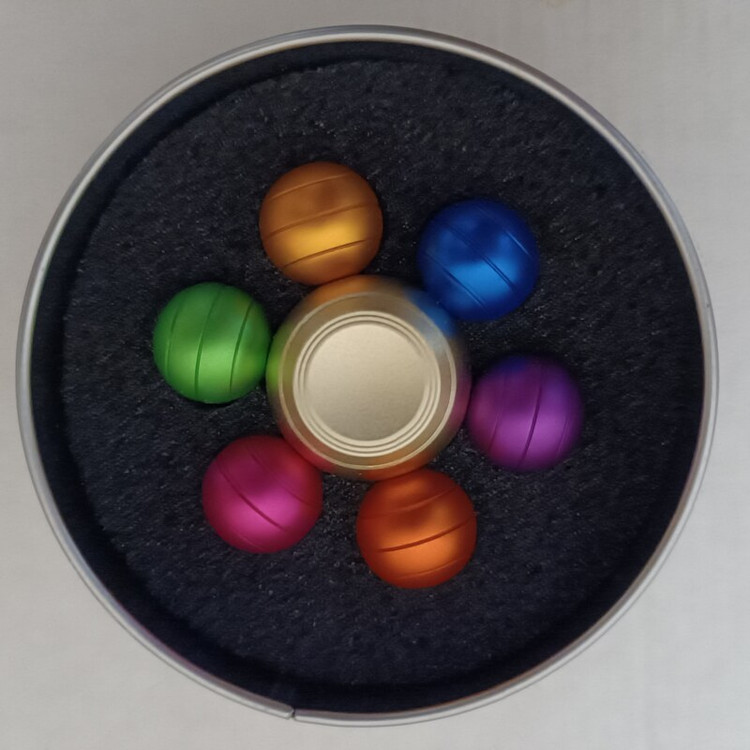 فیجت اسپینر فلزی 6 پره توپی رنگی Colorful 6 Ball Fidget Spinner یک اسپینر فلزی با طرحی خاص و زیبا می باشد که علاوه بر جنبه تزئینی دارای جنبه درمانی ضد استرس و اضطراب می باشد. این اسپینر فلزی دارای بلبرینگ skf روان با چرخش بی صدا و طولانی است. وزن اسپینر فقط 70 گرم بوده و حس خوبی در زمان کار با آن خواهید داشت. فیجت اسپینر توپی رنگارنگ دارای یک جعبه فلزی گرد بسیار شکیل است که می تواند یک انتخاب مناسب برای هدیه دادن باشد. جنس بدنه آن فلزی با روکش رنگی می باشد.
