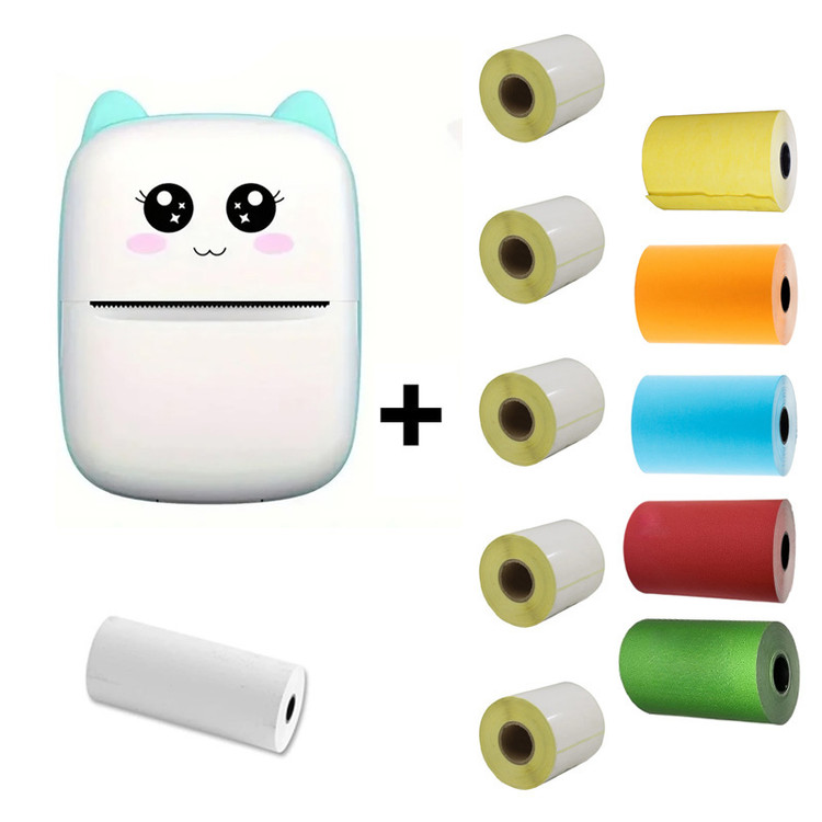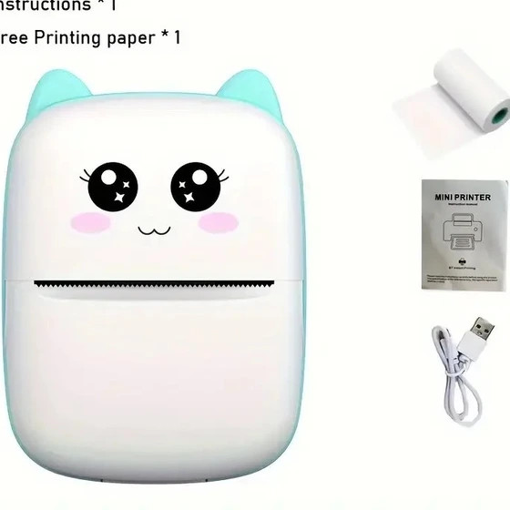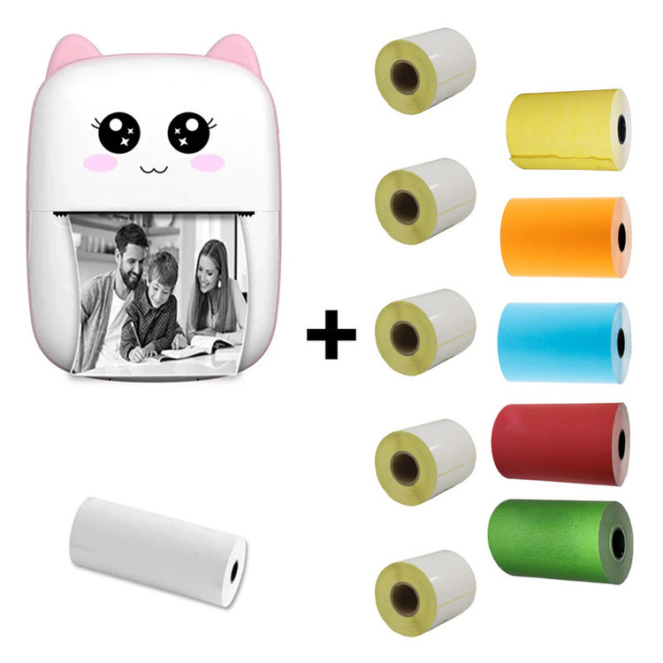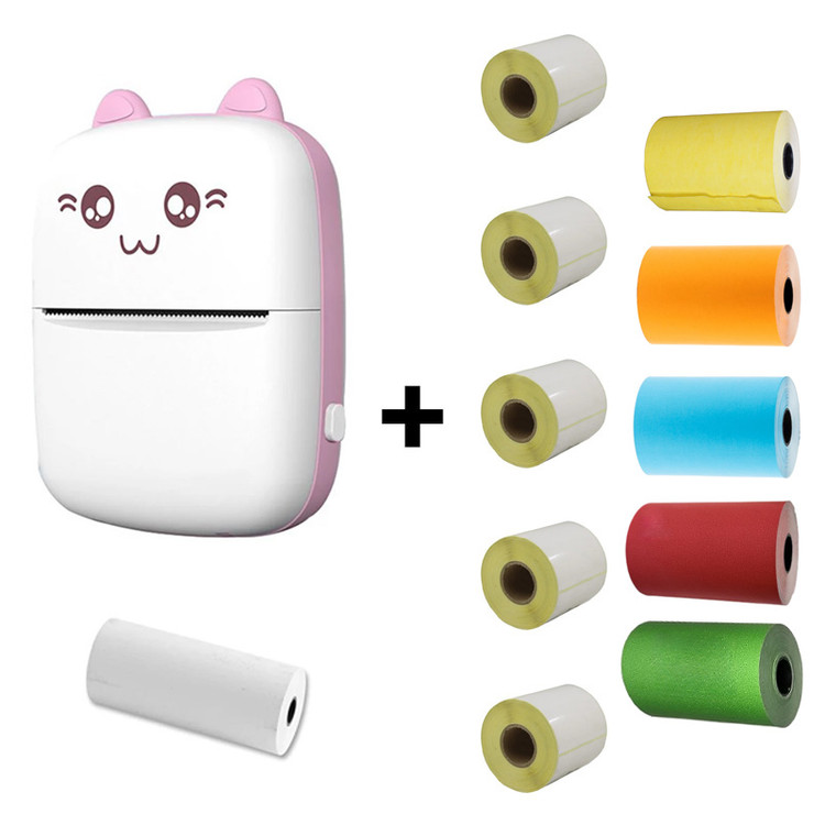 مینی پرینتر حرارتی قابل حمل مدل خرگوشی + 5 رول برچسبی و 5 رول رنگی