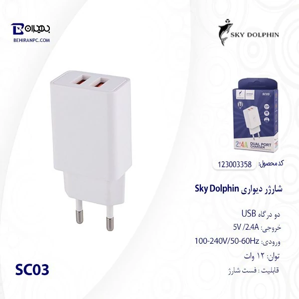 کلگی شارژر 2.4 آمپر دو پورت SKYDOLPHIN SC03
