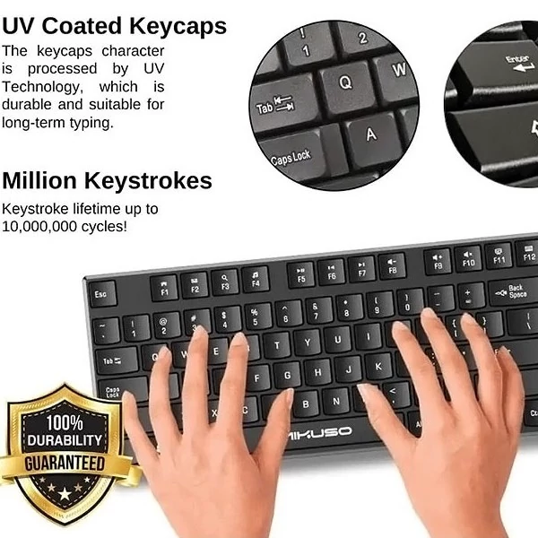 کیبورد و ماوس بیسیم میکاسو با نوع اتصال بیسیم و رابط دانگل USB، به شما این امکان را میدهد که بدون محدودیتهای کابل، از فاصلهای تا 10 متر به راحتی به دستگاه خود متصل شوید. این قابلیت، آزادی عمل بیشتری به شما میدهد و بهخصوص در محیطهای کاری یا خانگی که نیاز به تحرک بیشتری دارید، بسیار کارآمد است. همچنین، این ست با قابلیت Plug And Play به سرعت و آسانی به سیستم شما متصل میشود و شما میتوانید بدون نیاز به نصب درایور خاصی، از آن استفاده کنید.