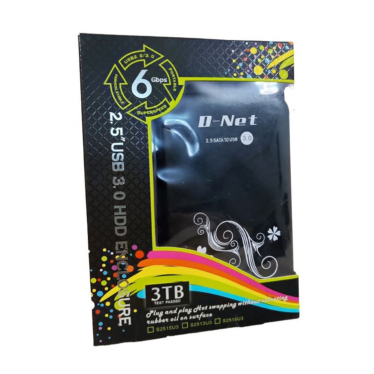 باكس هارد طرح دار 2.5 اينچی مدل D-net USB3.0 به شما این امکان را می دهد که از هارد های اینترنال خود، به عنوان هارد اکسترنال استفاده کنید.